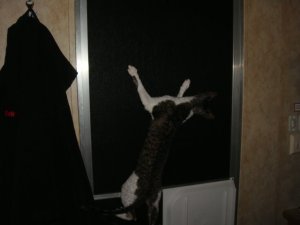 I had to go outside to get something out of my car and some insects got inside….now I’m watching Silly bounce off of the walls trying to catch them and climb up the screen door.