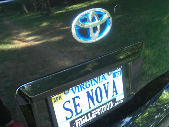 I happened to stop by the parts department at Miller Scion and found out that the Prius badge had come in early. My boss took the badge to the service bay and had one of the guys file down the little plastic prongs that plug into the body of the car since my hatch doesn’t have any holes in it.