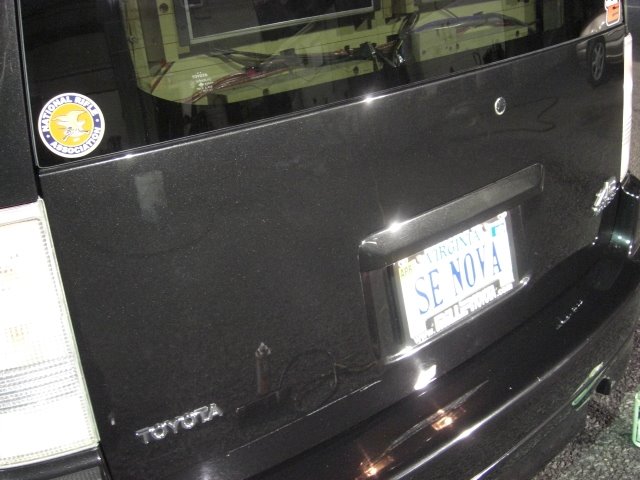 ….so yesterday, after finding some fishing line in a sales bin at a hardware store, I removed the Scion badge. Damn, that’s some awesome glue Toyota uses. It took a while to get the sticky stuff off of the hatch.