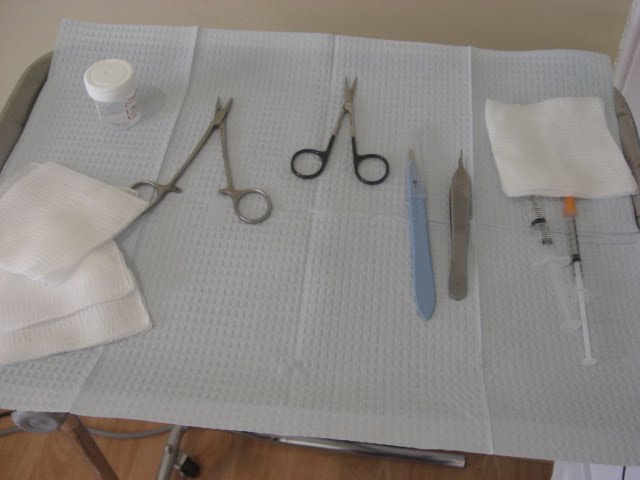 The procedure itself took less than 10 minutes. The other 40 minutes was spent giving me more shots because I kept on feeling the doctor cutting on me. The sound and feeling reminded me of using poultry scissors to cut up a chicken.
