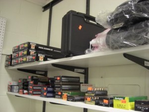 I couldn’t get a good picture of the beautiful handguns in the case due to the top glass being pretty scratched up. I’ll have to catch Jimmy or Greg when they pull all his pretty babies out of the gun safe one day. They are beauties.