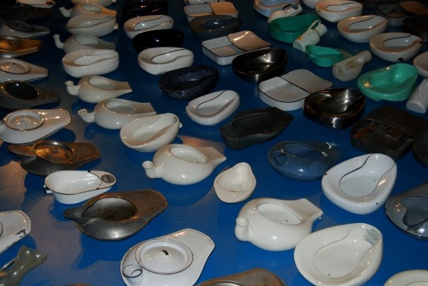 5. Soooo… there appears to be a mysteriously vast array of bed pans in your post pic?I mean, nothing wrong with that, n'all…Why does it cost you money to get your stitches removed? I figure if they put em' in there, they better be taking them out!Otherwise its practically like littering!And whats with the cat and the coffee?