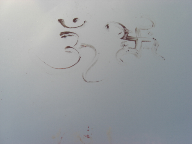 That's the first thing I noticed too, but then I saw the drawing on the left. This is a brand new car and the symbols where not put there with paint but some kind of powdery stuff…like ashes.