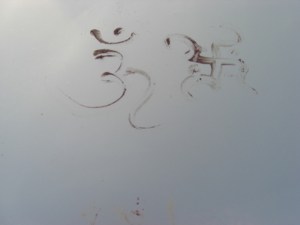 We saw this on the hood of one of our customer’s new car and almost had it washed until we looked closer. Maybe it’s something for luck???