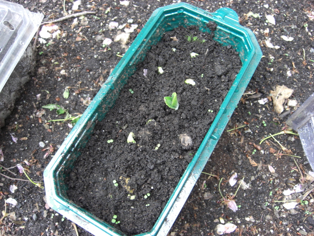 Here are some green beans that are coming up in my tiny back yard.