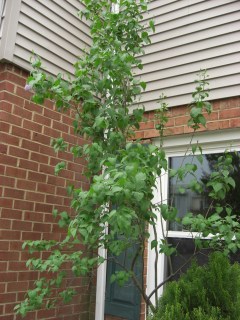 This is a Flieder? I think it’s called a Lilac bush. Shit! I just notice something purple in the corner of this photo and had to go out in the rain and check. Sure enough, it’s the first bloom ever on this bush. Too bad it doesn’t smell like it did in Germany. I’m so disappointed!!! Wonder what happened to it?