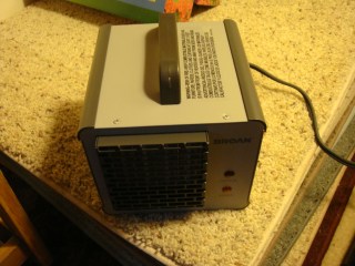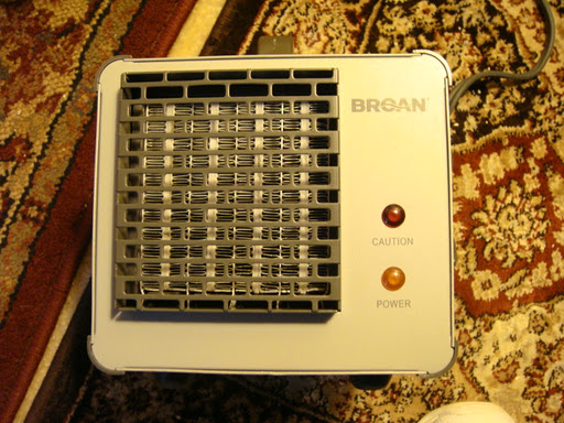 The upstairs is always very easy to keep warm, but the downstairs where I live at gets really cold when the temperatures come down.  I was reading Andy’s blog the other week and he always has such good information on how to keep his RV warm, so I decided to order the Broan heater that he has.  It’s only 6’x6’x5, but it packs an awful lot of heat.  It came in the other day and does wonders in keeping my feet and room warm.