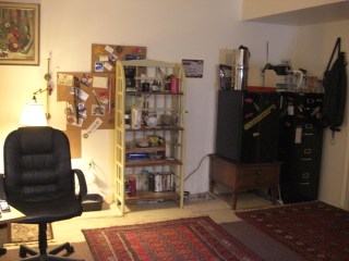 To the right is the file cabinet, which now only has one drawer for actual files….then there is the sock drawer, underwear drawer, misc. drawer.