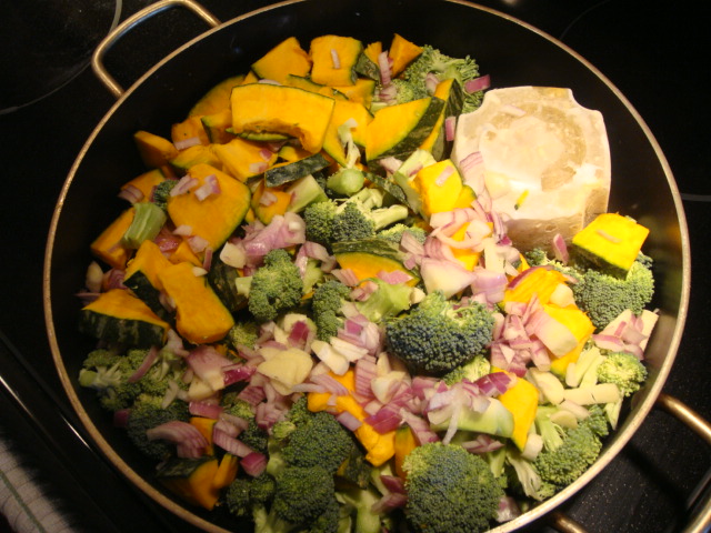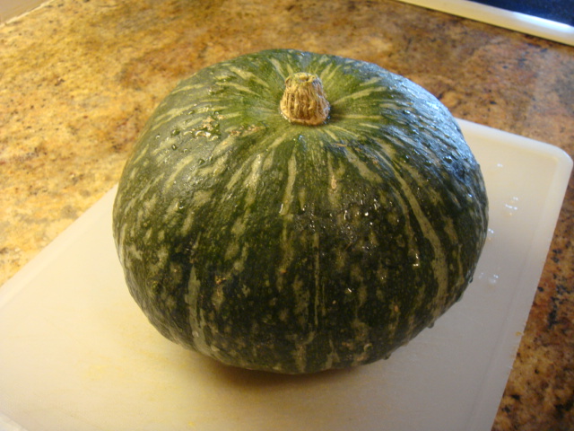 Last month, Pete introduced me to Kabocha, a Japanese squash. I’ve never really been a squash person and have never cooked it before, but I thought I would give it a try. Pete never mentioned that I would need a sledge hammer to cut this bugger up.