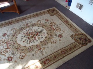 I picked up this rug at a yard sale right down the street yesterday. Paid five bucks for it, took it home, steam cleaned it and it’s good to go. 🙂