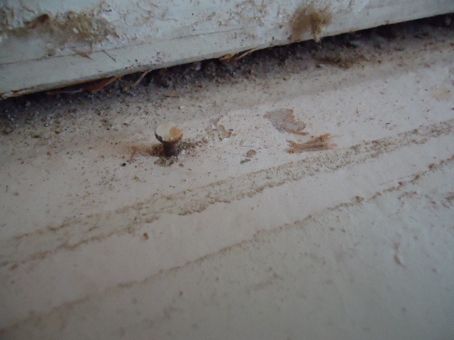 Then there is this 1/2 inch space along the walls that I need to fill in.  I don’t know what to do about the nails.  When I tried to pull them out, chunks of concrete broke off.  I tried to drive the nails in all the way, but couldn’t.  I might need to get a bigger hammer.