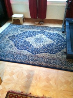 I picked up this huge rug at a yard sale last week.  Not bad for 10 bucks, eh?  Around here they go for about 80 bucks when you buy one new.