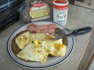 My mom gave me a small indoor electric grill. I haven’t used it yet since I don’t know how much juice it will pull. Anytime I have an appliance that uses too much, it will throw off the breaker at Kenny’s house. I have a Kill-O-Watt gadget in here somewhere that tells you how much juice an appliance uses. As soon as I find it, I’ll see if I can use the grill in here.