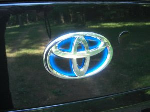 I happened to stop by the parts department at Miller Scion and found out that the Prius badge had come in early. My boss took the badge to the service bay and had one of the guys file down the little plastic prongs that plug into the body of the car since my hatch doesn’t have any holes in it.