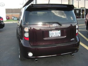 James stopped by the dealership last night to show off his new wheels,Β tail lights, and dual exhaust installed on his Scion xB 2nd Generation.