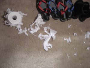You see what happens when I leave the house in too much of a hurry and forget to put the toilet paper in the dispenser??