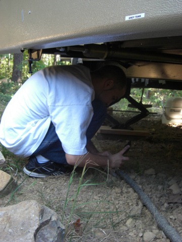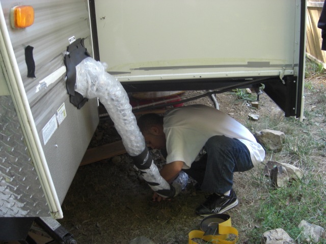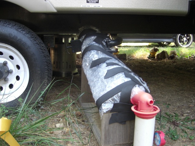 After chasing a car, I picked up T-Jay in Manassas. He helped me wrap the water hose, while I wrapped the pipe coming out from the black water tank. We used up every piece of bubble wrap that I had left.