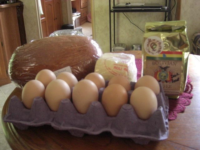 I also bought some multi-grain bread, butter, and double yoked eggs.