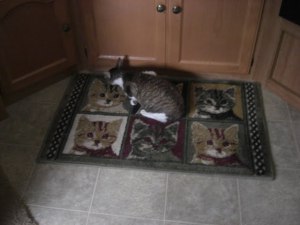She cracked me up…touching the rug with her paw and immediately withdrawing it as if the rug was on fire.