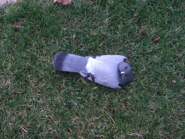 On my way out, that same Pigeon was sitting in the grass. I stopped to see if it was okay.