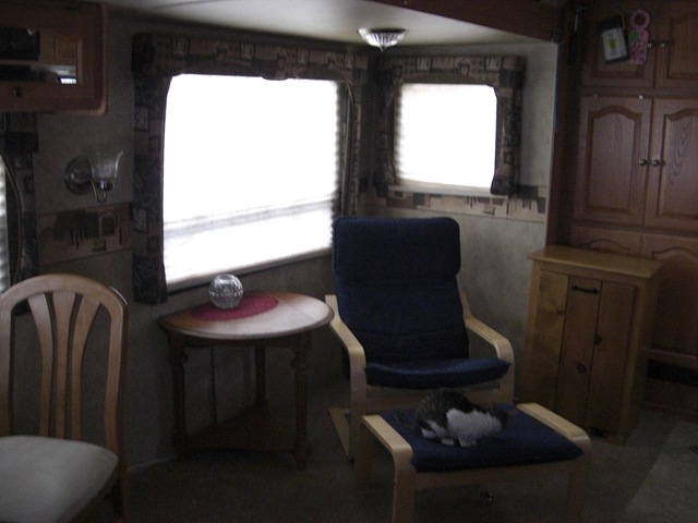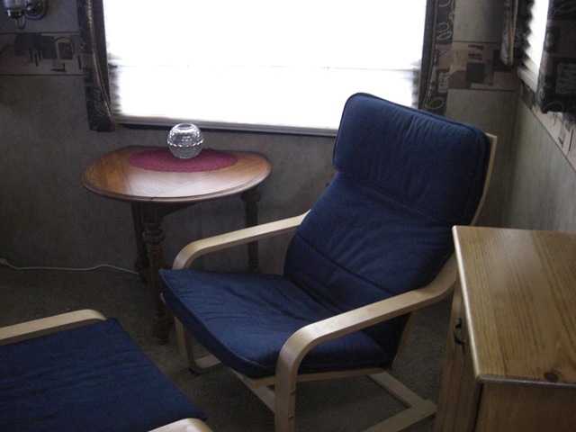 After e-mailing a few times with Robert on Craigslist yesterday, I now finally have my chair. 🙂 I was almost late for work because I kept on pulling over on the way to e-mail him back. People behind me were probably going, WTF? I really didn’t think I was going to get a chance to pick it up until today, but Robert was kind enough to deliver it to me at Miller’s around 8 o’clock last night. It fit on the backseat of my xB without any problem. By 10 PM I was sitting on it drinking a cup of tea. 🙂