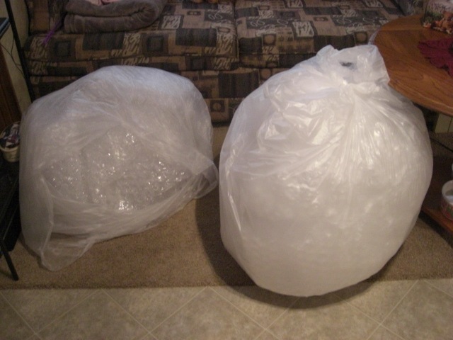 Friday night Aaron stopped by after I got home and brought me two huge bags of bubble wrap….so the saga continues. Thank you, Aaron. 🙂