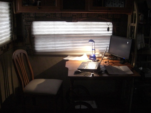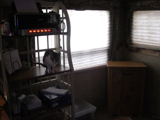 Check out those swell window decorations….aren’t they butt ugly? They remind me of Motel rooms. Wonder who came up with that idea? Somebody told me it had to be a man. Well, I think I will cover them with a different color material the first chance I get…or totally remove them.