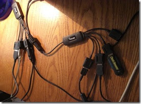 Ha…finally found my other USB extension.  Only having two places to plug in gadgets on my laptop really sucks.  Now I have and extension plugged into an extension.  Room for one more gadget after everything is plugged in.  That solves the problem I have with misplacing wires. 🙂