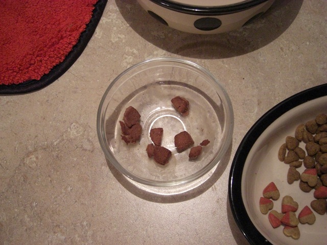LOL…..that bowl was half full when I left yesterday. She has carefully removed all the gravy and left all the meat.