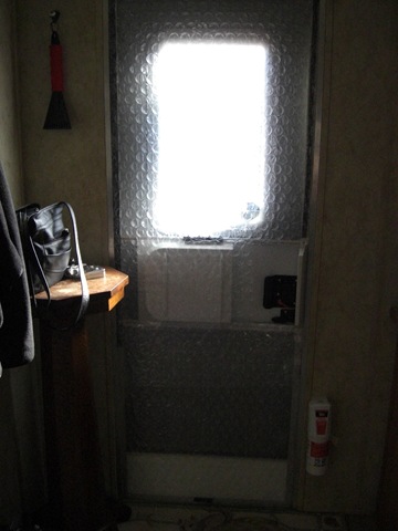 Since the screen door is so flimsy, I wrapped the entire thing in bubble wrap except for the small opening for the door handle. Then I also have a curtain that covers the entire area.