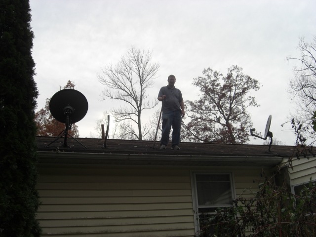 Here is Kenny on top of his roof, checking on a leak, scaring the crap out of me. I was having visions of him falling through the roof into the house.