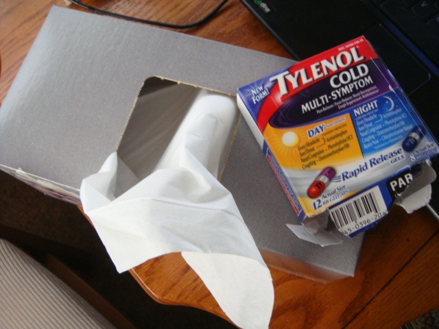 I really should have stayed home Wednesday too, but I just couldn’t take any more days off. Apparently, Alka Seltzer Cold doesn’t work for me anymore. 😦 Jeremy at Miller’s told me that Tylenol was helping him, so I picked up some and it’s doing the trick.