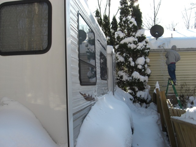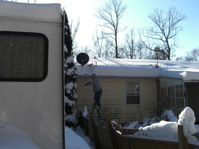 While I was back there, Kenny was trying to free their satellite dish so that they could get their internet back…..