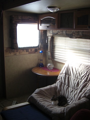 This morning is was time to rearrange the furniture again. For the last couple of weeks, I’ve been super comfortable and warm except for my feet. This was getting old and it was getting on my last nerve…. you know what happens when things get on my last nerve. I make them go away. 🙂