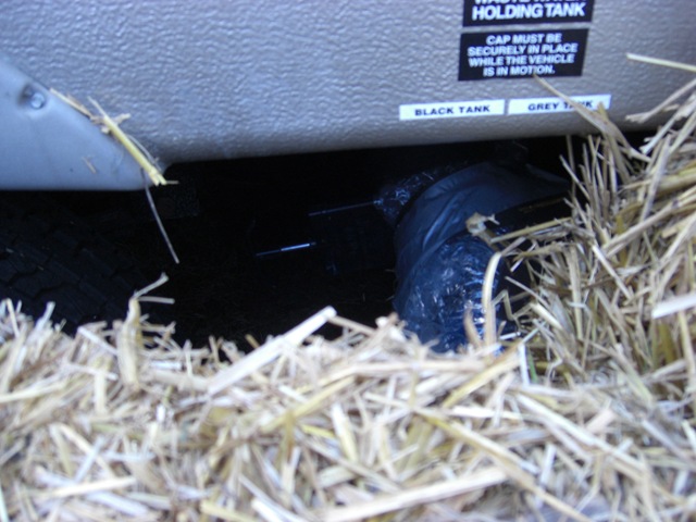 I had no problem dumping. The antifreeze did the trick and kept the tank from freezing up and I am so relieved!!! 🙂 I’m sure that all that straw also made a big difference. Afterward, I covered everything back up snug as a bug….until next time.