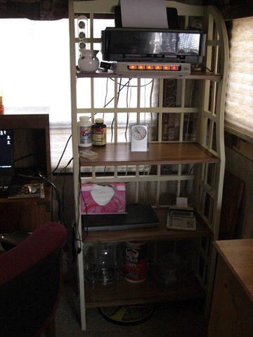 I could find another place for everything on the shelf unit except for the printer and power supply. That will leave room for plants.
