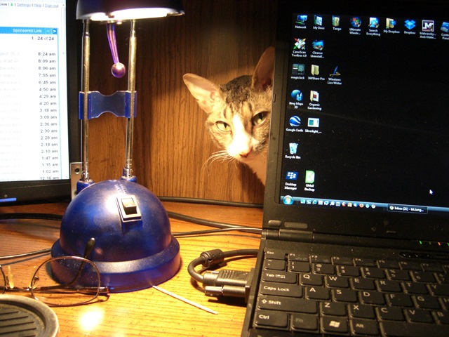 Meanwhile, my pussy has a new favorite spot to sit at. It’s nice and warm back there.