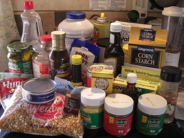 I cleaned out my kitchen cabinets this morning and took out everything that I THINK is GMO. Even though I used my list from Non-GMO, I’m sure I missed something, but this is good for now.