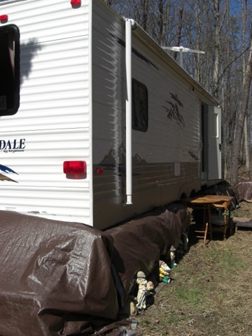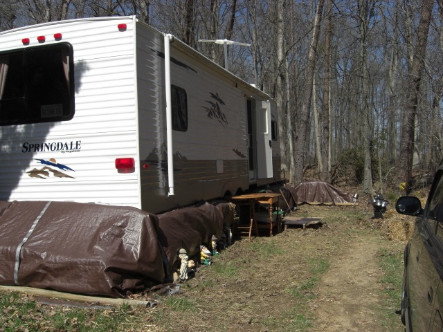 Removed some of the straw from around the trailer and removed the straw from the walk area so that the ground could dry up and some grass might grow.