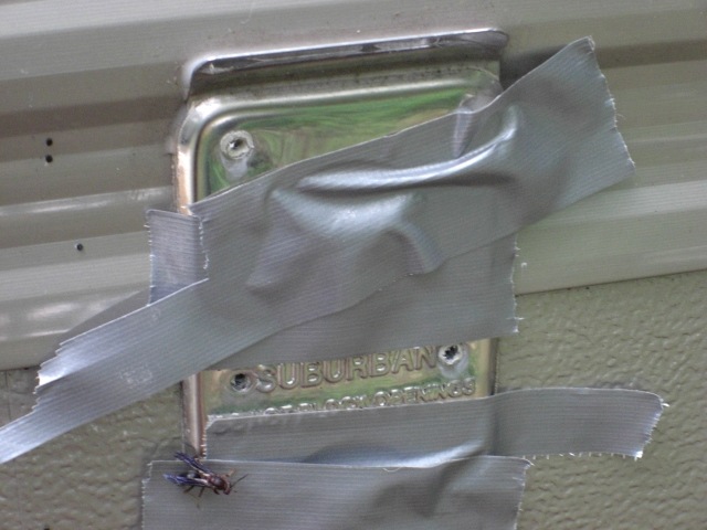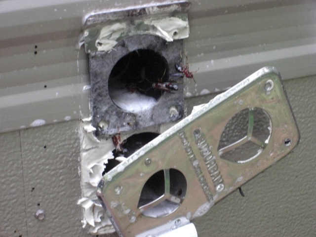 I think the upper vent is for the stove and the lower is for my refrigerator. I had asked T-Jay to come over and remove the cover yesterday, but after he removed the first screw, the rat bastards started to swarm.