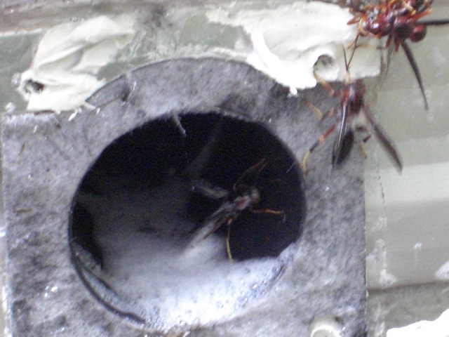 After they kicked the bucket I took a knife and pulled the nest out. It was almost big enough to plug the pipe.