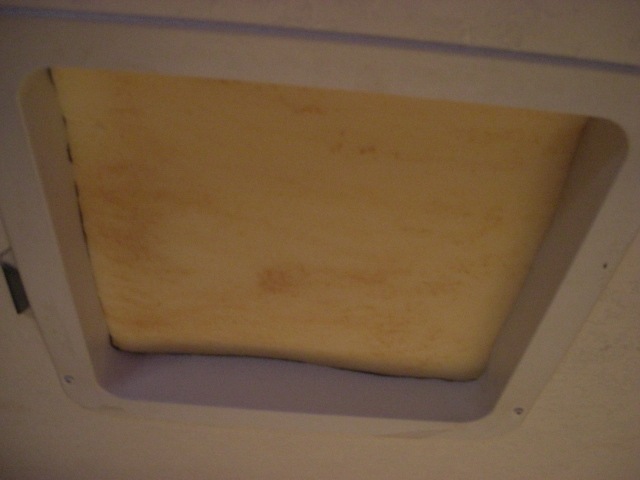 I took the foam rubber and cut out three 14”x14” pieces and then stuck them in the vent openings. It doesn’t look all that great right now, but I have some light weight white curtain material which I will cover them with. Wish I would have done this from the get go.