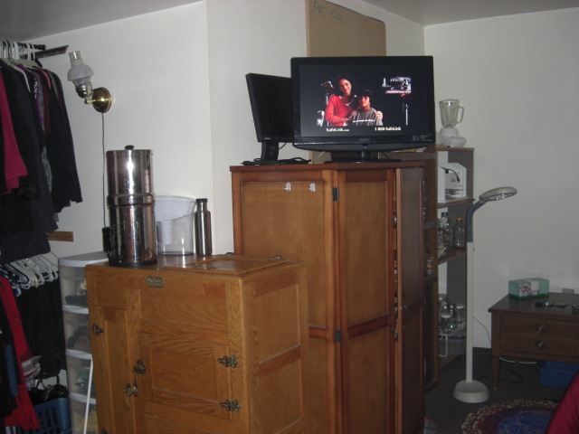 Ha, that’s actually a computer cabinet under the TV. There just isn’t any room for the computer in it.