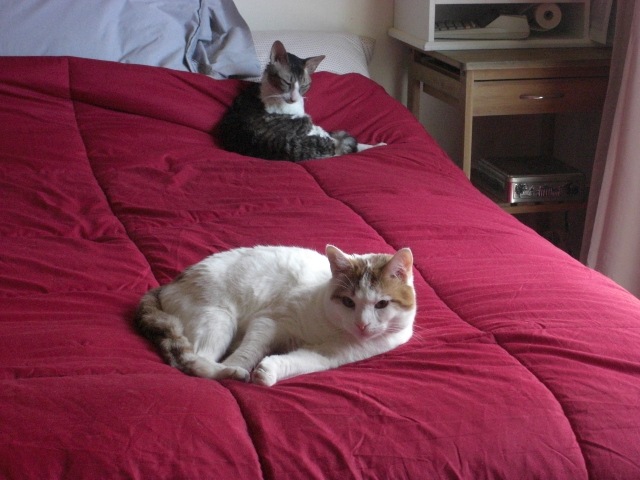 Silly is doing fine and is getting along well with Patches, the other cat that lives here. They spend all day chasing each other and then lay knocked out on my bed.