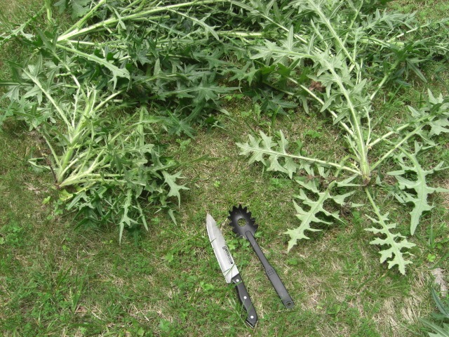 I don’t know what kind of plant this is, but it was getting totally out of control. One was about 4 ft tall and the stem was 2 inches thick. So I went outside….armed to the teeth to deal with it…