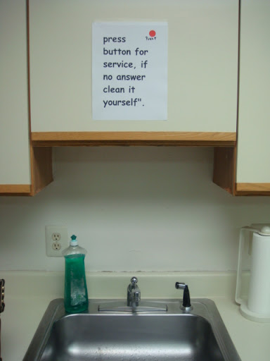 Today’s funny is a sign that’s now hanging in the dining room at work: