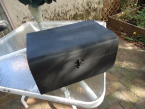 A couple of months ago, my mom gave me a wooden box. I spray painted it black. It holds other things to keep them from rolling around the back while I’m driving.