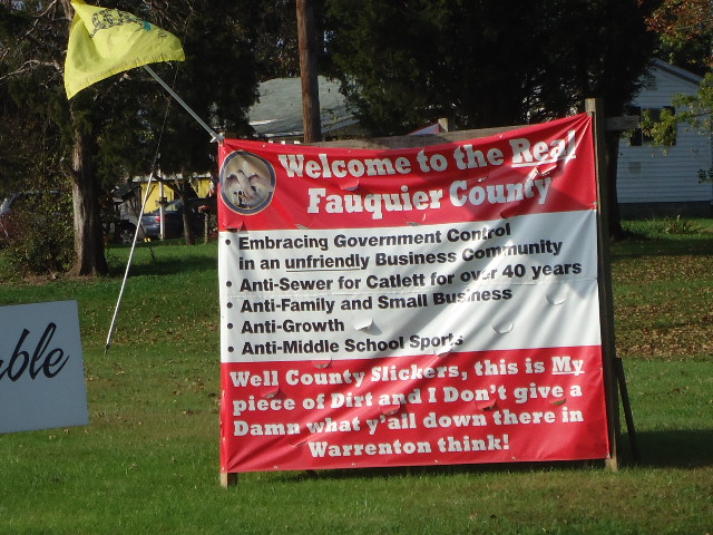 For the past couple of months, I have noticed this sign on the right side of Nokesville Rd. Of course, I’m driving 45 to 55 miles an hour and can only read bits and pieces of it at a time without running off of the road. This morning I decided to pull in the driveway and read it up close.