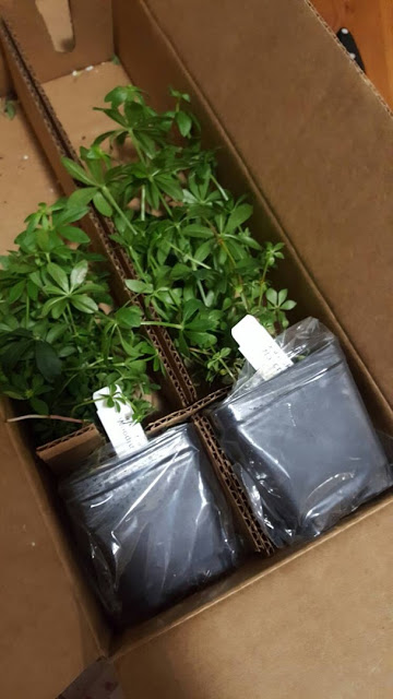 I have tried to grow Sweet Woodruff from seed for the past three year but could never get them to spout much less grow. A couple of months ago I found a company, The Growers Exchange , that has them already started. I ordered them a few weeks ago and they finally came in the mail yesterday.