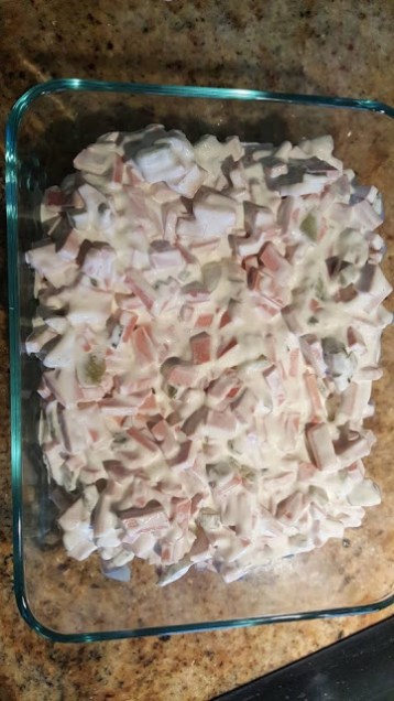 I also made some German Fleischsalat. That’s cut up Bologna, sweet pickles, Mayonaise and sour cream. It’s resting in the fridge and will be good on crackers later.